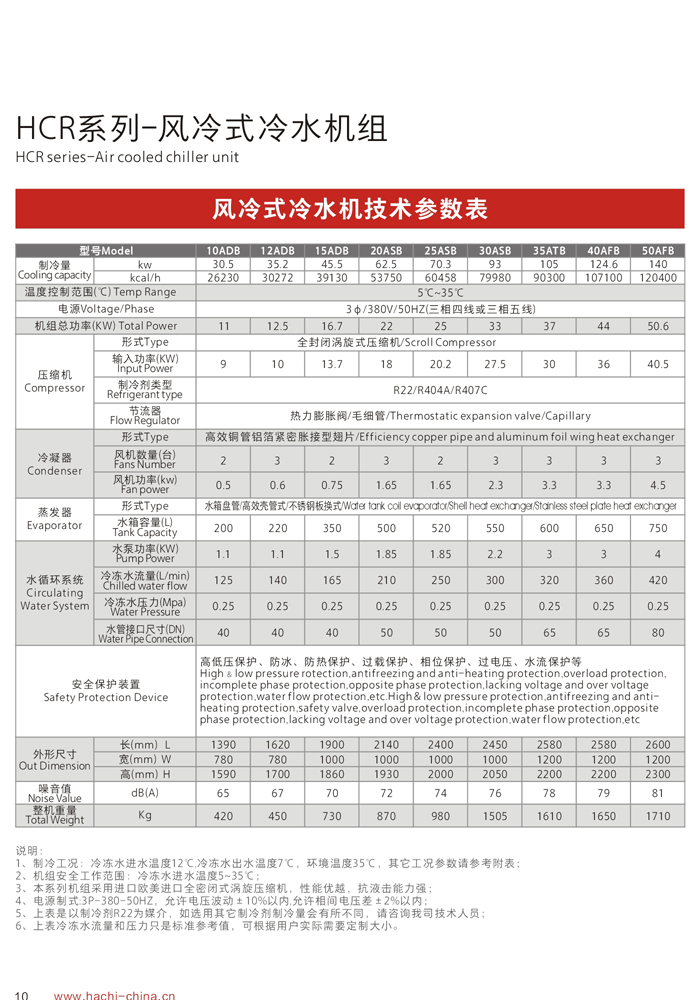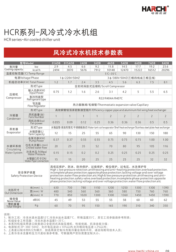 應用環(huán)境: 主要為模具、光纖光纜水槽、工業(yè)爐、制藥機械、點焊機等行業(yè)提供循環(huán)冷卻水,能夠有效地控制和調(diào)節(jié)冷卻水溫度(3℃~35℃),讓機械設備產(chǎn)生熱量的部分在運轉過程中能夠保持所需要的恒定溫度冷卻設備產(chǎn)生的高溫。從而大大提高機械設備的使用壽命和工作效率! 一、風冷型冷水循環(huán)機也叫風冷式冷水機組,主要區(qū)別就是冷水循環(huán)機不帶水箱(水箱外置),通過板式換熱器或者殼管式換熱器來給水箱內(nèi)的水循環(huán)降溫。 產(chǎn)品特點Features: 1、采用國際最先進的渦旋式或活塞式壓縮機,電器及制冷系統(tǒng)原器件全部為世界著名品牌; 2、冷卻水泵及管路系統(tǒng)全部采用不銹鋼材質,確保水質更潔凈,使用壽命更長久、制冷效果更穩(wěn)定; 3、風冷冷凝器全部采用進口風機及大風量低噪音軸流設計,噪音更低、換熱效率更高; 4、風冷系列無需配置冷卻水塔及冷卻水泵,安裝簡單,移動方便,適合生產(chǎn)場地比較緊缺的環(huán)境使用; 5、機組采用進口高精度電子顯示器,內(nèi)置P.I.D 自動演算功能,啟動延時功能,控溫精度在±0.5℃范圍內(nèi),且控制溫度范圍在3℃~40℃之間; 6、為保證使用安全,機組內(nèi)置漏電保護器、相位保護、過載保護、電流保護;系統(tǒng)安裝了高、低壓保護傳感器,為防止缺水或循環(huán)水系統(tǒng)內(nèi)部結冰,機組安裝了流量開關和低液位保護裝置。